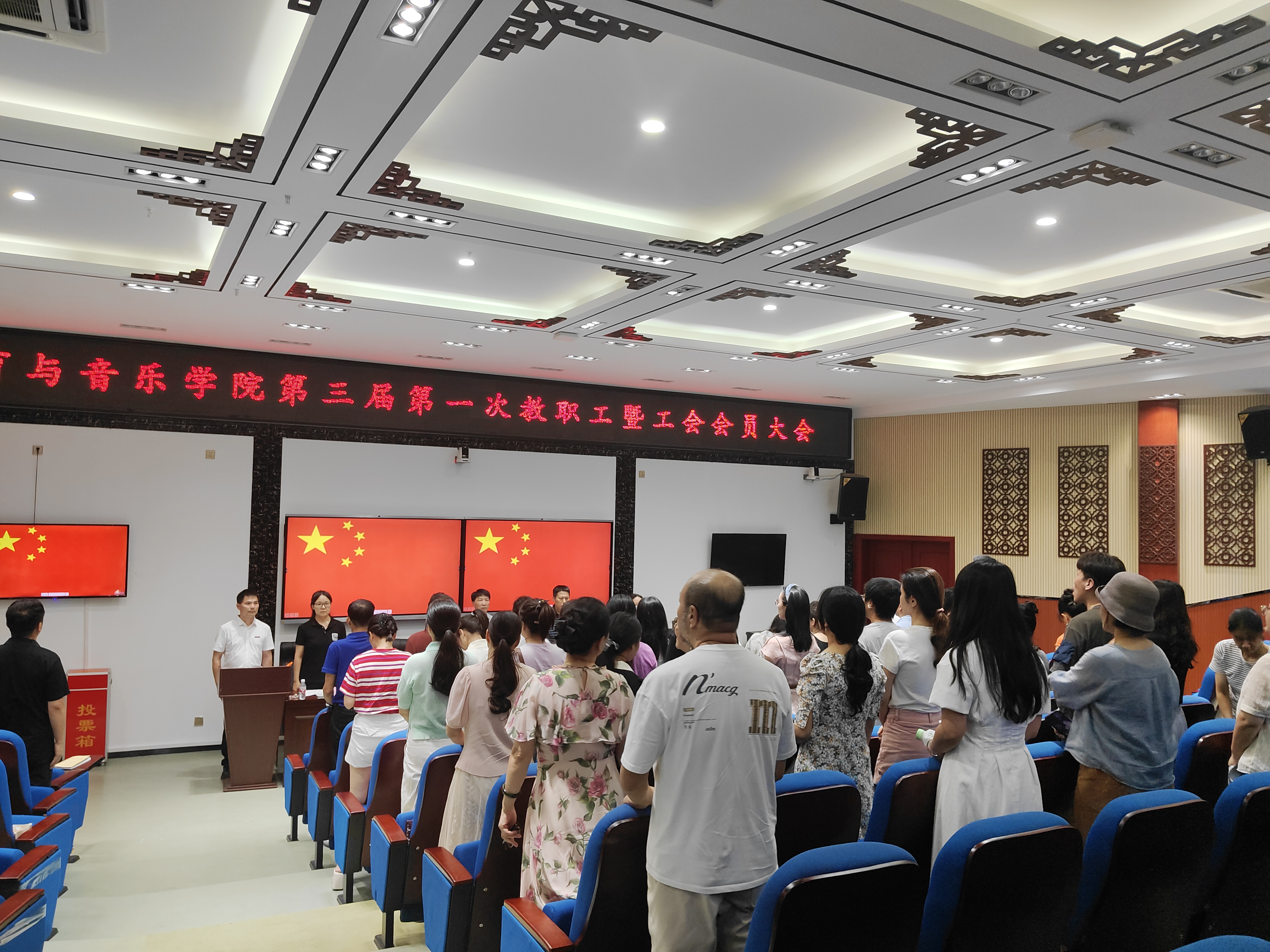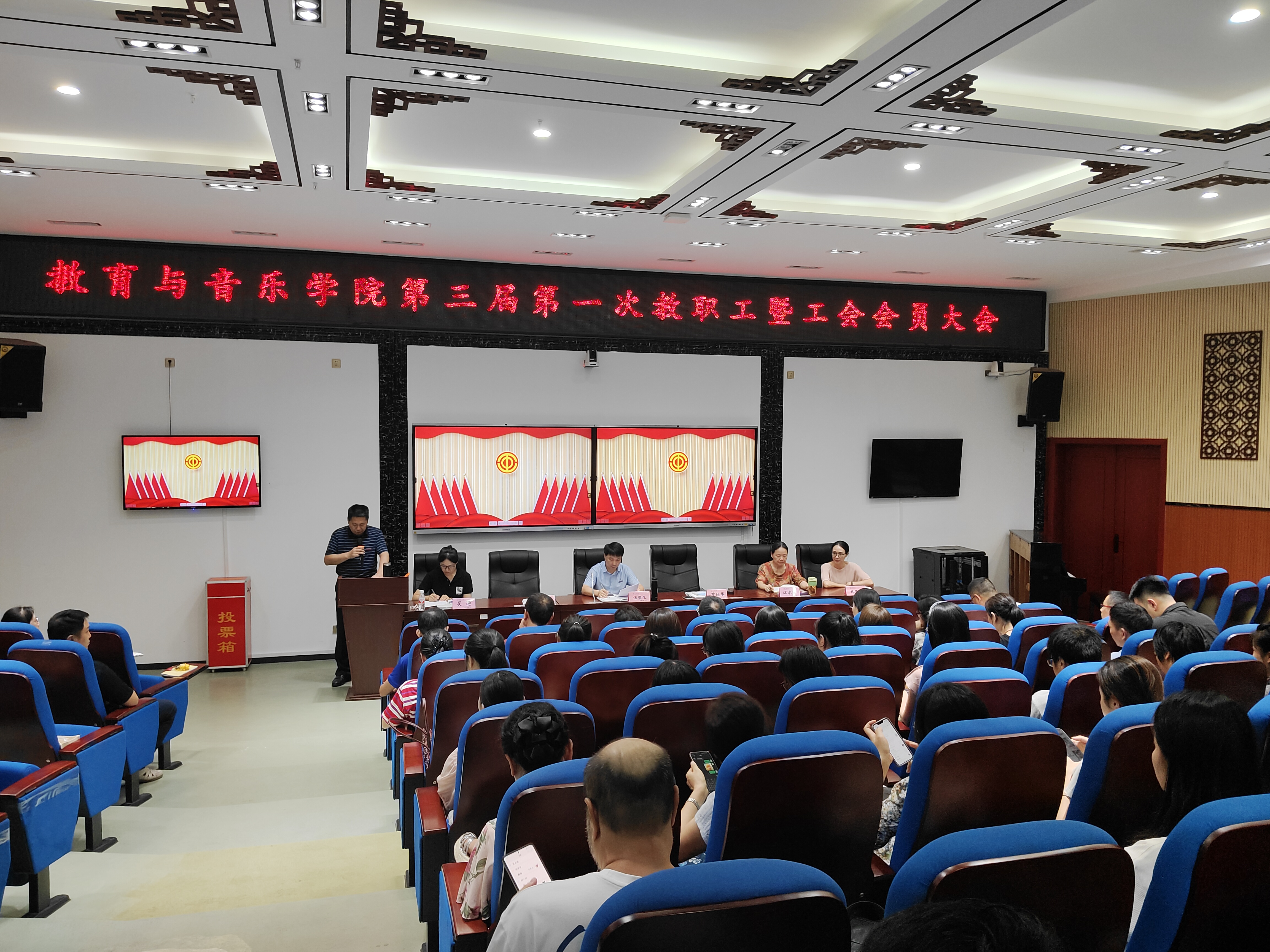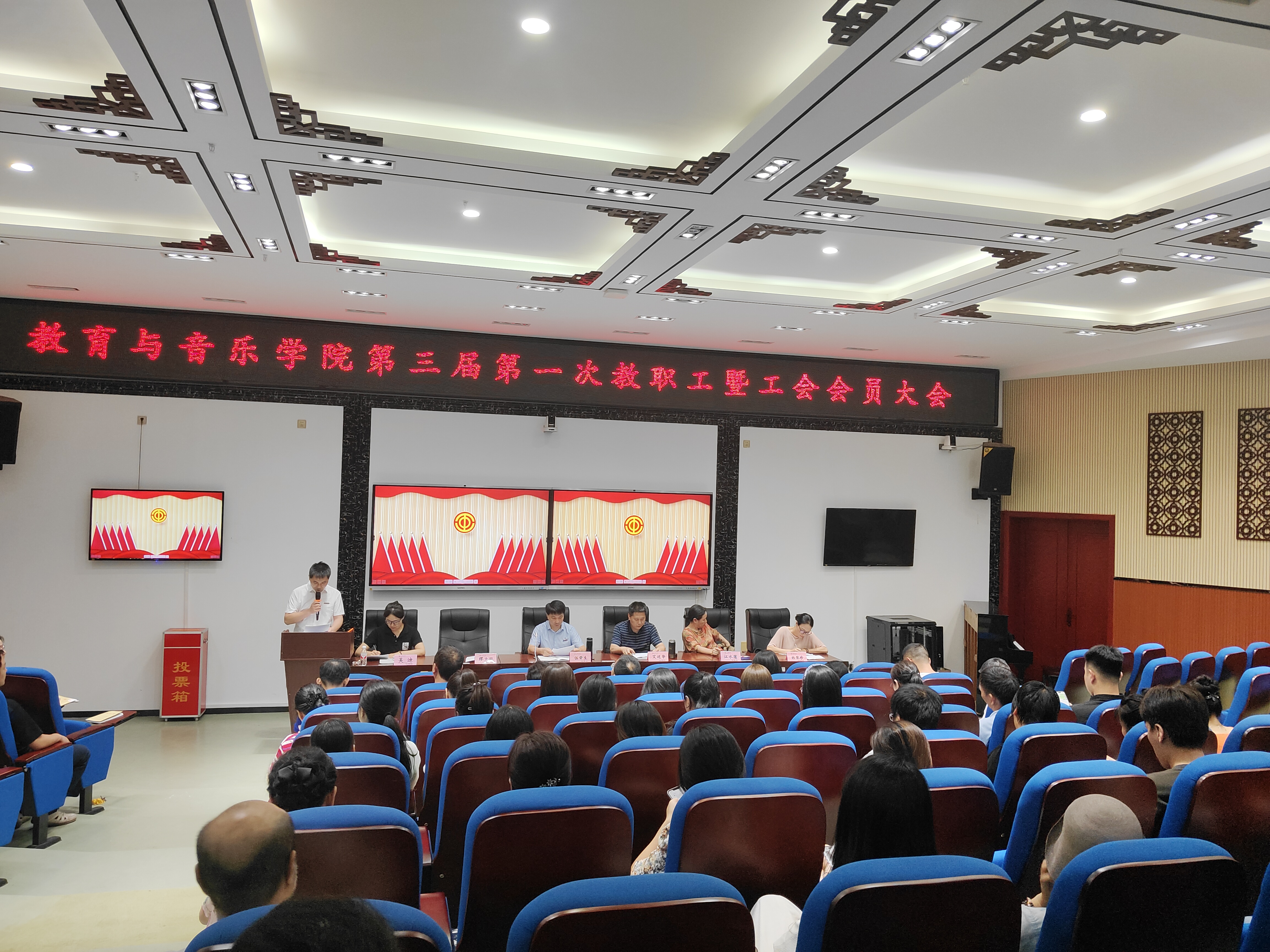 大会在庄严的国歌声中拉开序幕。在第一次全体会议上,会议先后听取并审议了由院党委副书记缪大旺同志所作《教育与音乐学院工会工作报告》和院长艾述华同志所作《教育与音乐学院工作报告》。