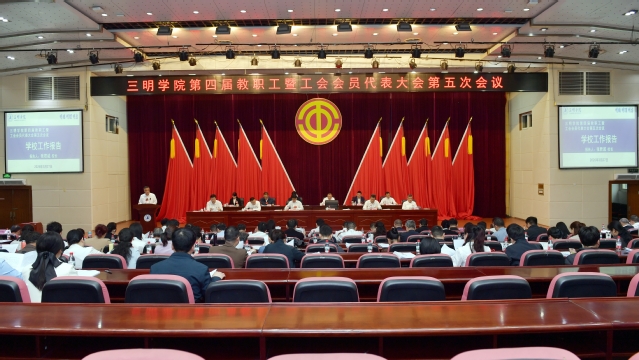3月27日,三明学院第四届教职工暨工会会员代表大会第五次会议在附楼学术报告厅胜利召开。大会正式代表、列席人员150余人参加会议。